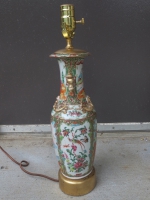 19thC CHINESE ROSE MEDALLION PORCELAIN VASE AS LAMP ON CUSTOM GILTWOOD BASE