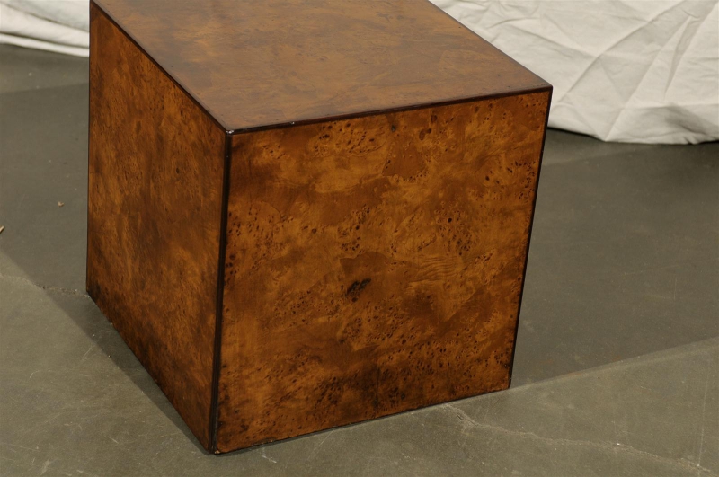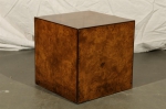c.1970s BURLED OLIVEWOOD CUBE SIDE TABLE