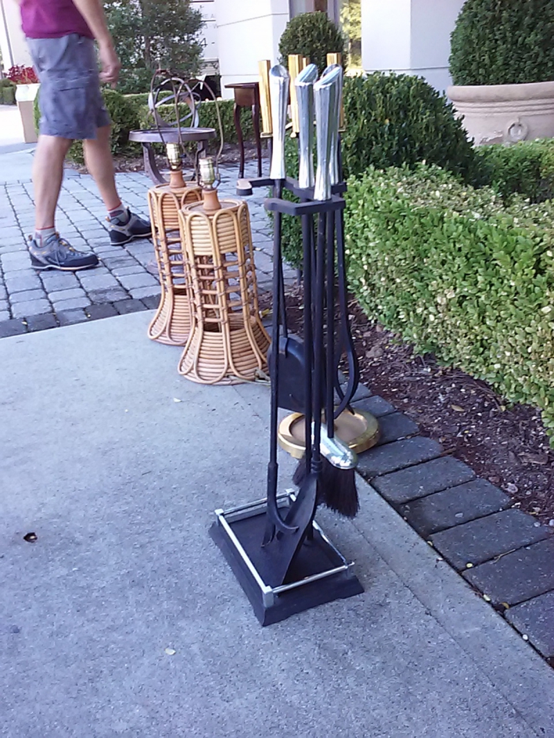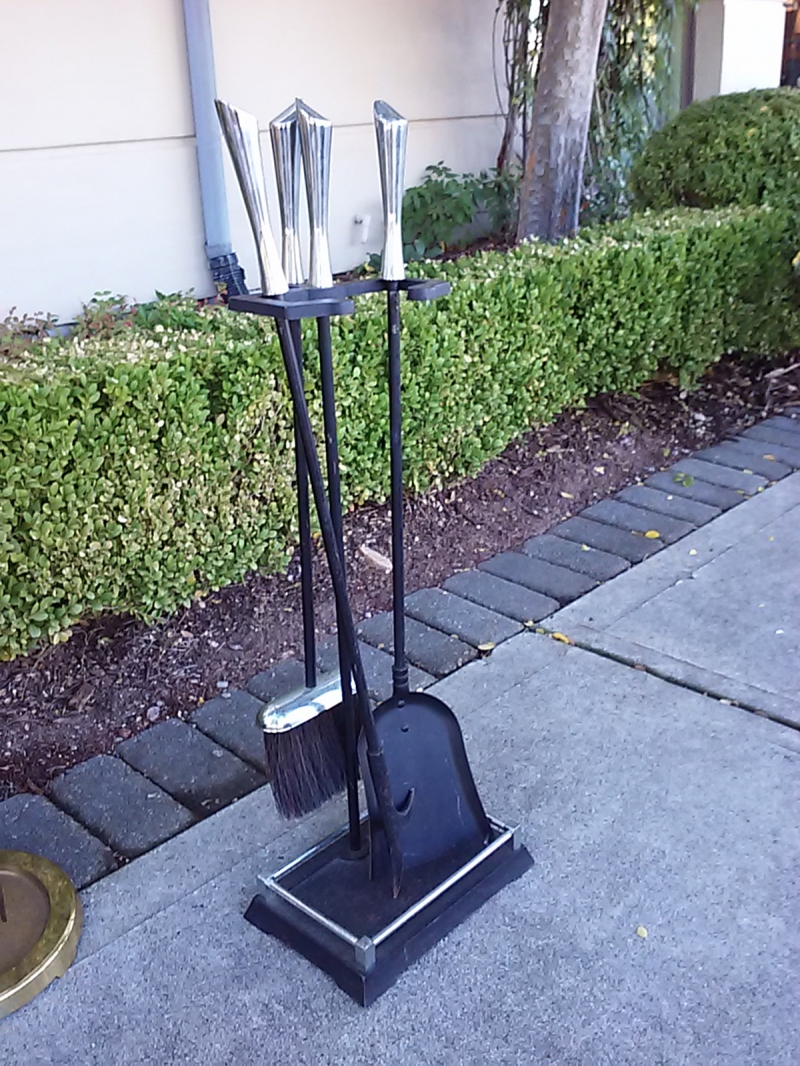 MID CENTURY CHROME FIRE TOOLS ON STAND