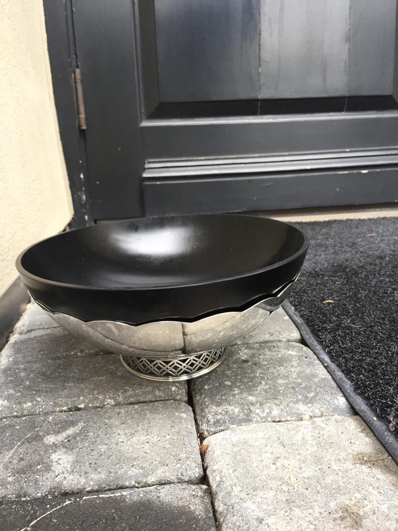 MID CENTURY REED & BARTON SILVERPLATE CENTERPIECE WITH LINER, OVAL SCALLOPED, FILIGREE FOOTED, MARKED 305 A