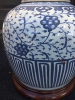 19th/20thC CHINESE BLUE & WHITE COVERED JAR AS LAMP