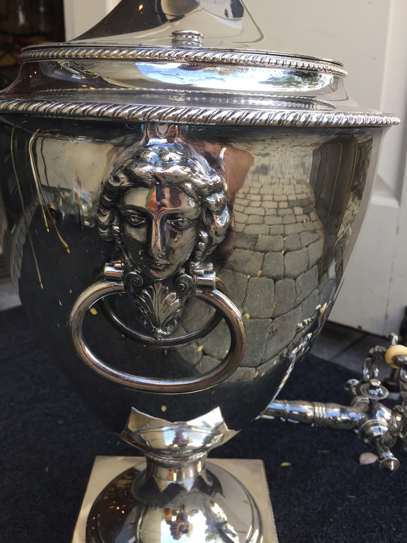 19thC SHEFFIELD HOT WATER URN, IVORY PULL