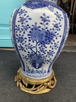 20thC CHINESE DELFT STYLE BRONZE MOUNTED LAMP