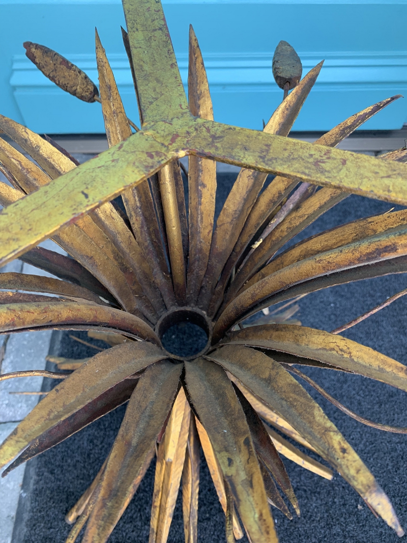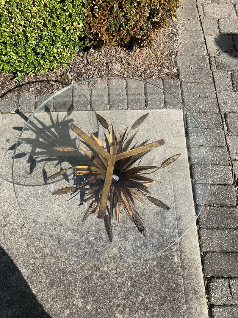 20thC ITALIAN SHEAF OF WHEAT GILT METAL DRINKS TABLE W/ GLASS TOP