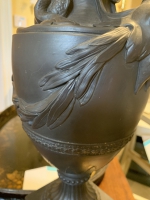 19thC BASALT EWER W/ FIGURAL MAN AS LAMP, ATTR. TO WEDGWOOD