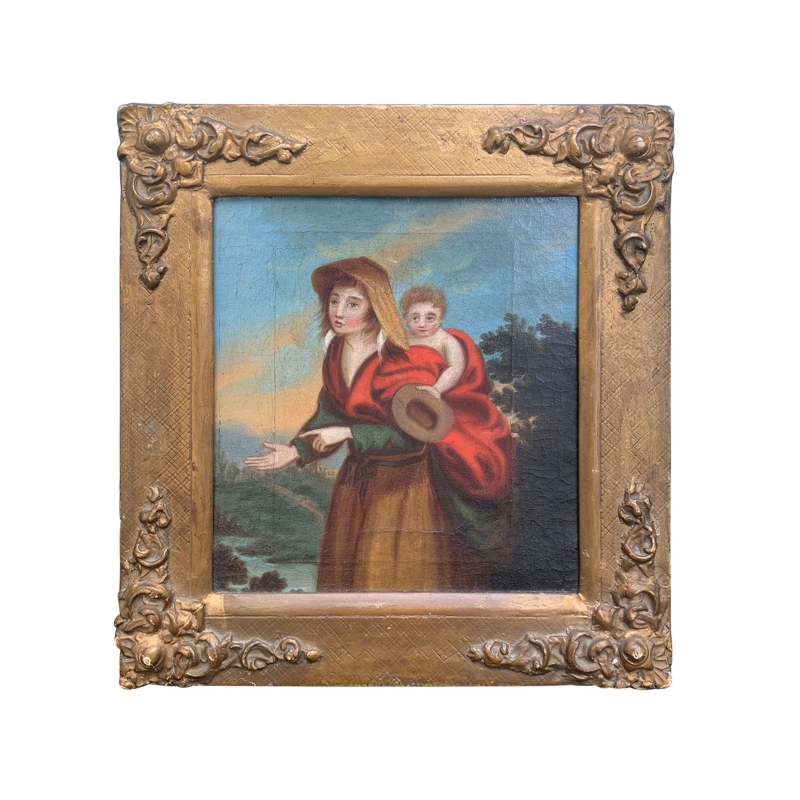 PROBABLY 18thC CONTINENTAL PAINTING OF MOTHER W/ CHILD