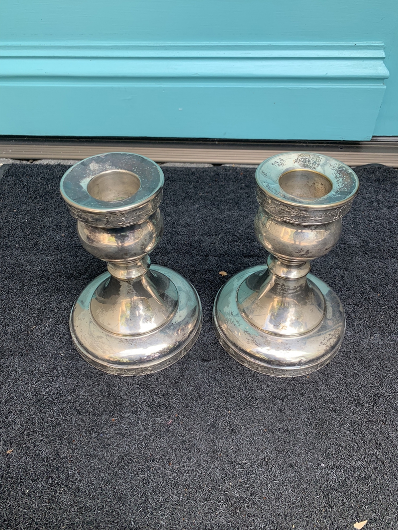 PAIR OF 20thC AMERICAN QUADRUPLE SILVER PLATE CANDLESTICKS BY SILVERCRAFT NEW YORK, MARKED
