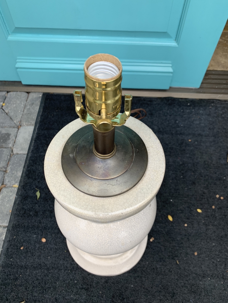 MID C WHITE POTTERY LAMP W/ CRACKLE FINISH