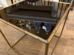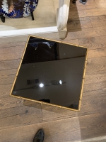 MID C GILT BAMBOO SQUARE TABLE W/ BLACK GLASS TOP