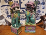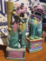 PAIR OF 18th/19thC CHINESE HAND PAINTED POLYCHROME PORCELAIN FOO DOGS, UNMARKED