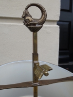 20thC BRONZE 2 ARM BOUILLOTTE LAMP W/ DOLPHINS & BLACK TOLE SHADE