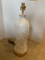 MID C WHITE POTTERY LAMP WITH BAMBOO MOTIF ON CUSTOM GILTWOOD BASE