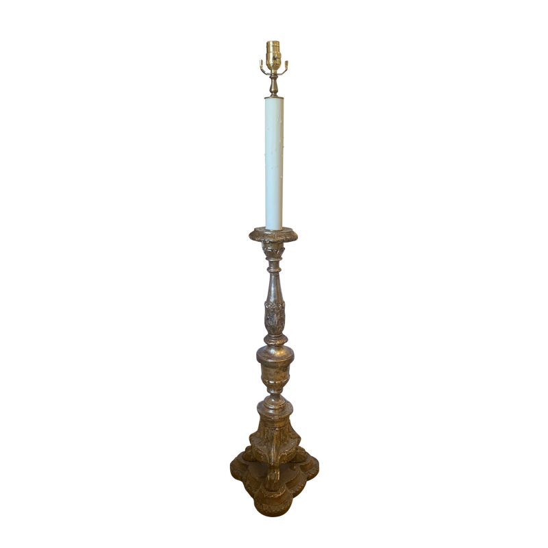 19thC GILTWOOD TORCHIERE OR PRICKET AS FLOOR LAMP