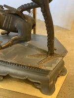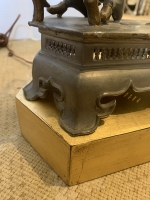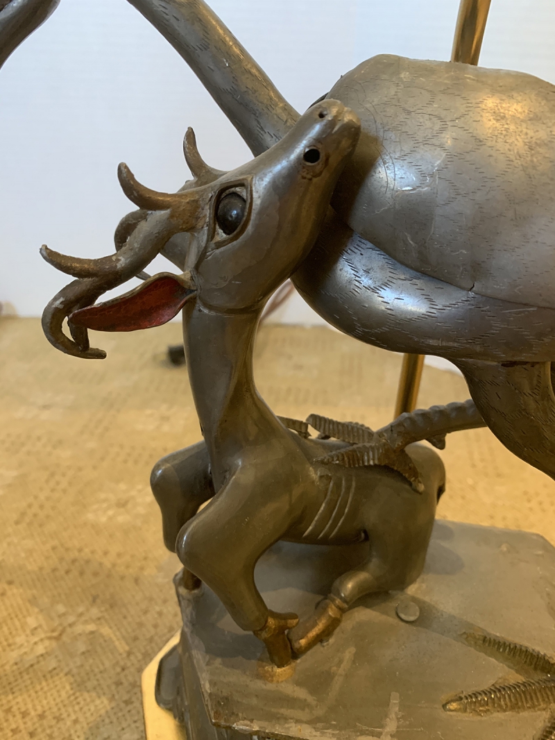 19thC CHINESE PEWTER FIGURES OF CRANE & DEER MOUNTED AS LAMPS ON CUSTOM GILTWOOD BASES