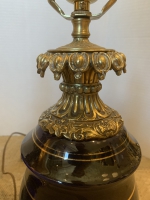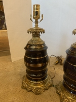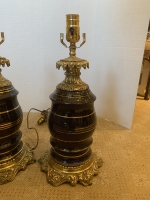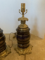 PAIR OF 19thC COBALT PORCELAIN LAMPS W/ BRONZE MOUNTS & GILT BANDING