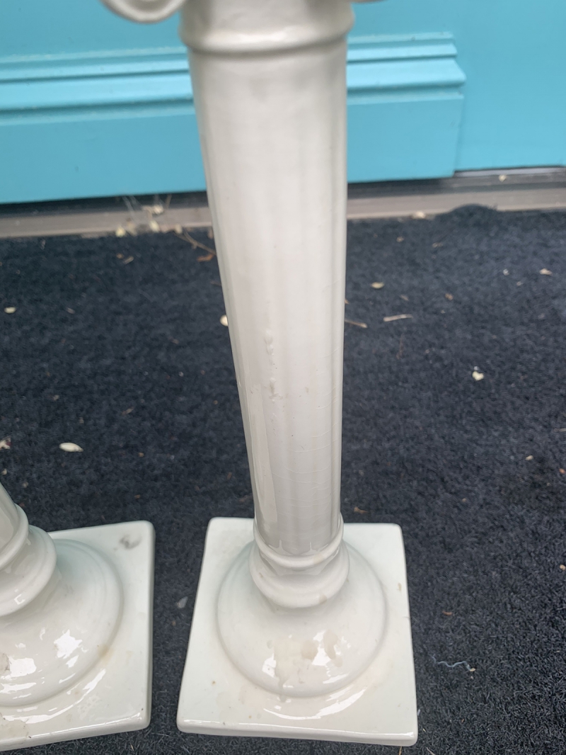 PAIR OF 19thC CREAMWARE PORCELAIN CANDLESTICKS