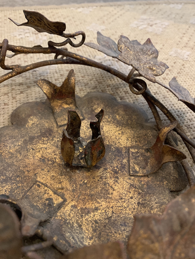PAIR OF 20thC c.1960s GILT METAL IVY CANDLE HOLDERS