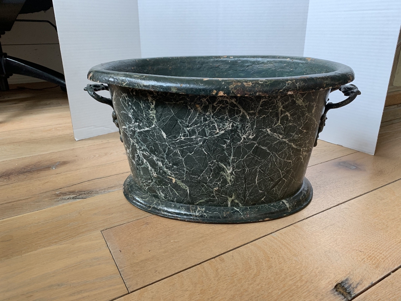 19thC FAUX MARBLE TOLE FOOT BATH W/ HANDLES