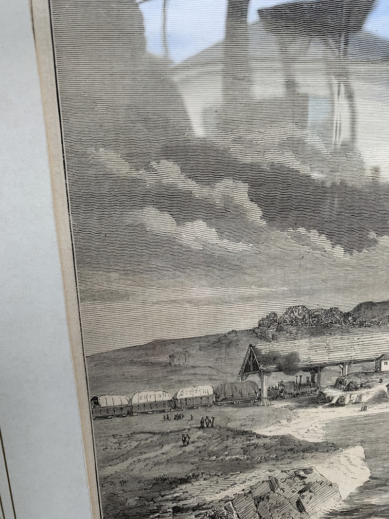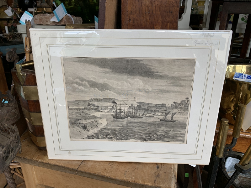 19thC c.1855-1865 FRENCH GRAVURE PRINT OF GALVESTON HARBOR, TITLED "VIEW OF THE HARBOR AND TOWN OF GALVESTON"