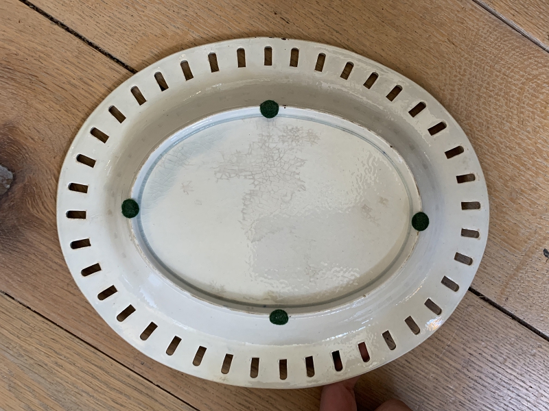 19thC RETICULATED CREAMWARE BOWL W/ BROWN DETAIL & MATCHING UNDERPLATE
