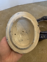 19thC c.1825 ENGLISH STAFFORDSHIRE BLUE & WHITE TRANSFERWARE LIDDED TEAPOT W/ STRAINER BY RALPH AND JAMES CLEWS, IMPRESSED MARK. HUNTING SCENE / SPOTTED DOGS