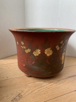 19thC CHINESE RED & GILT TERRACOTTA CACHEPOT W/ GREEN INTERIOR