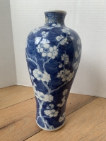 EARLY 20thC c.1900-1910 CHINESE KANGXI STYLE BLUE & WHITE CHERRY BLOSSOM PORCELAIN MEIPING FORM VASE, MARKED