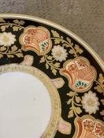 PAIR OF 19th/20thC ENGLISH PORCELAIN DINNER PLATES, BLACK WITH GILT DETAILS, UNMARKED