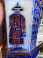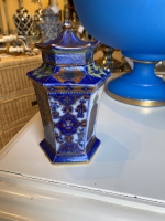 19thC c.1820-30s ENGLISH PROB. MASONS POLYCHROME PORCELAIN HEXAGONAL JAR W/ PAGODA LID, POSS. OLD SNUFF JAR
