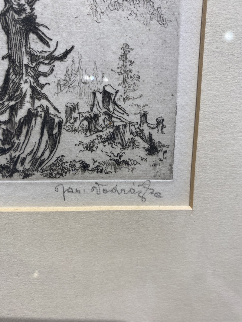 20thC ETCHING OF TREE, ILLEGIBLE SIGNATURE