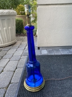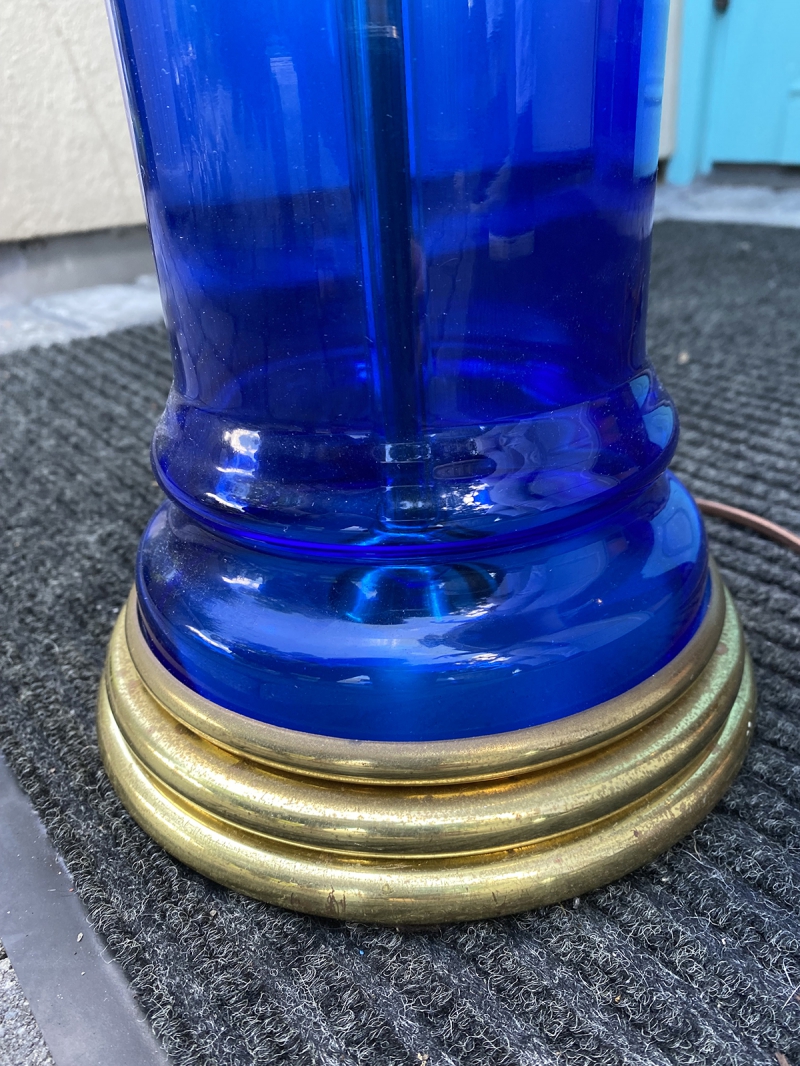MID 20thC FREDERICK COOPER STYLE COBALT BLUE LAMP, TYNDALE LAMPS STICKER, BRASS BASE