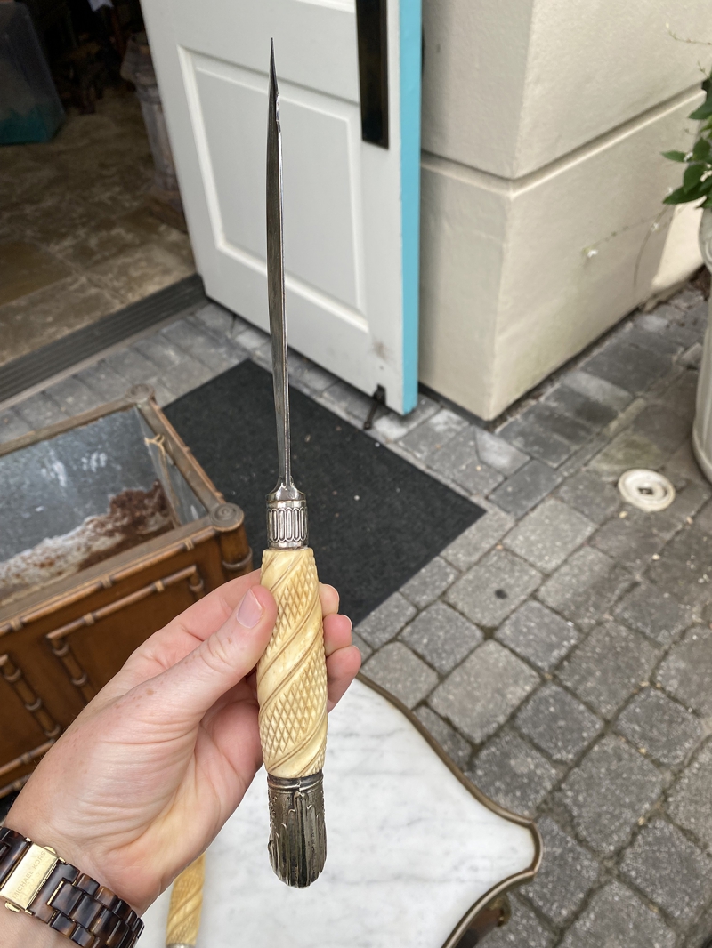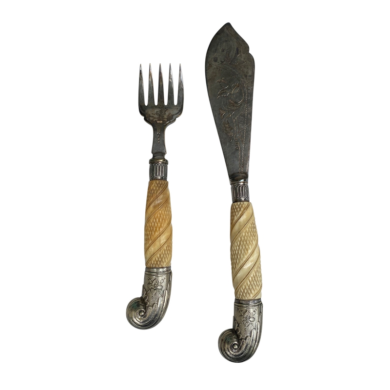 19th/20thC TWO PIECE ENGLISH CARVING SET FORK & KNIFE, MARKED EPS